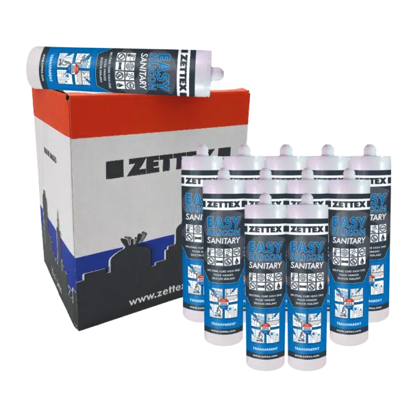 Zettex Easy Silicon S is een neutrale sanitaire kit die bestand is tegen schimmel en chloor, ideaal voor afdichtingen in vochtige omgevingen.